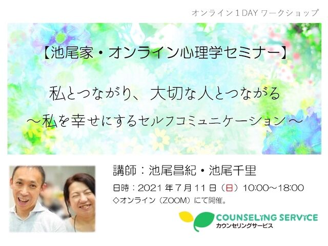 今回の池尾家セミナーは、大切な人とつながるために、あなたが自分自身の気持ちと価値に気づいていけるためのセルフコミュニケーションをテーマにお届けします。